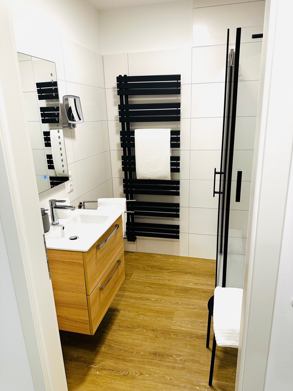 Das Bad ist modern und komfortabel eingerichtet.