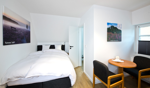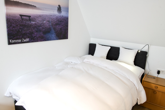 Die Kammer Zwölf ist ein kleines Doppelbettzimmer mit Duschbad in einer Gesamtgröße von 14,60 m².